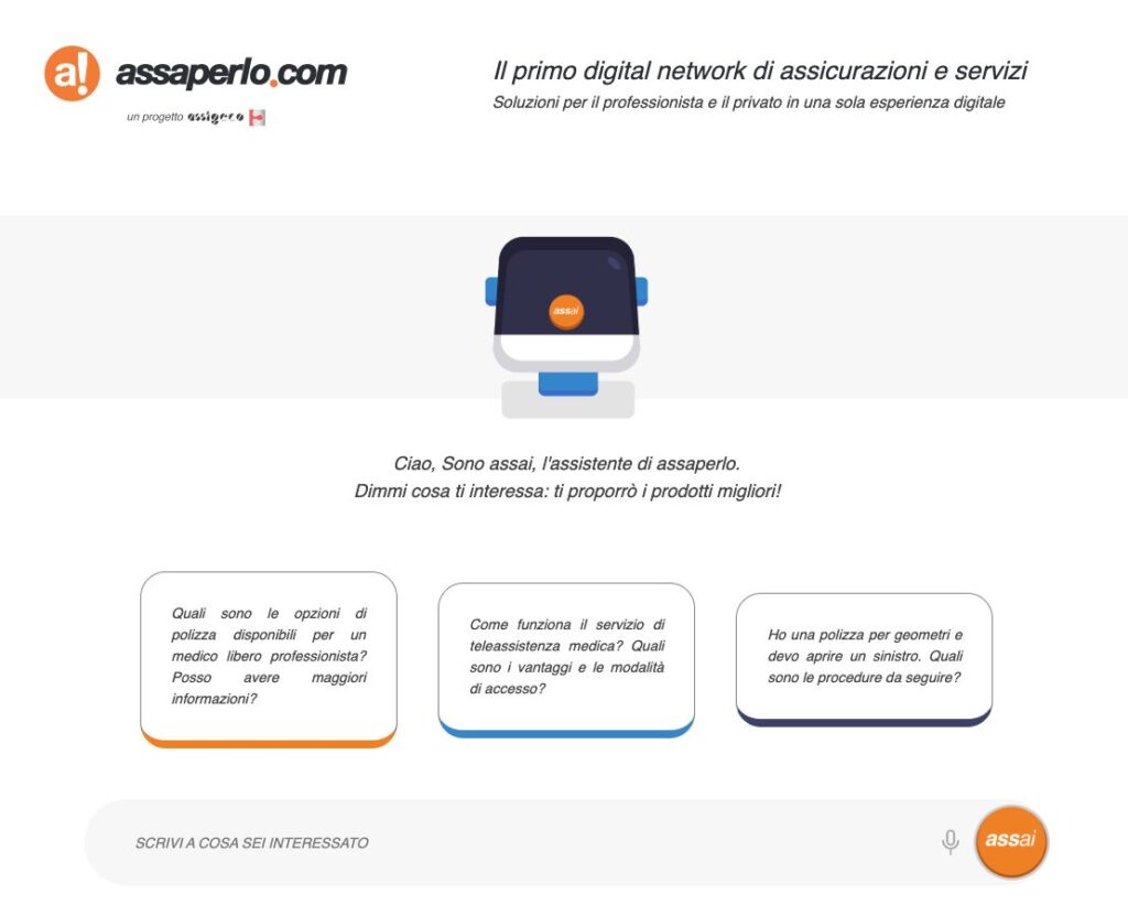 «Assaperlo.com è un network digitale ricco di soluzioni assicurative diversificate, nonché di soluzioni e prodotti esclusivi per moltissimi ambiti della vita, difficilmente reperibili dal consumatore privato a livello digitale», spiega Attilio Stigliano, Manager Public Bodies and Lloyd’s Unit di Assigeco e Responsabile di Assigeco.com, che aggiunge: «Il progetto intende orientare al meglio e più velocemente l’utente nella ricerca delle soluzioni più adatte alle sue esigenze. In quest’ottica, abbiamo implementato l’intelligenza artificiale di Assai, che garantisce rapidità, efficienza e precisione nelle risposte, grazie all’utilizzo evoluto di dati e algoritmi».