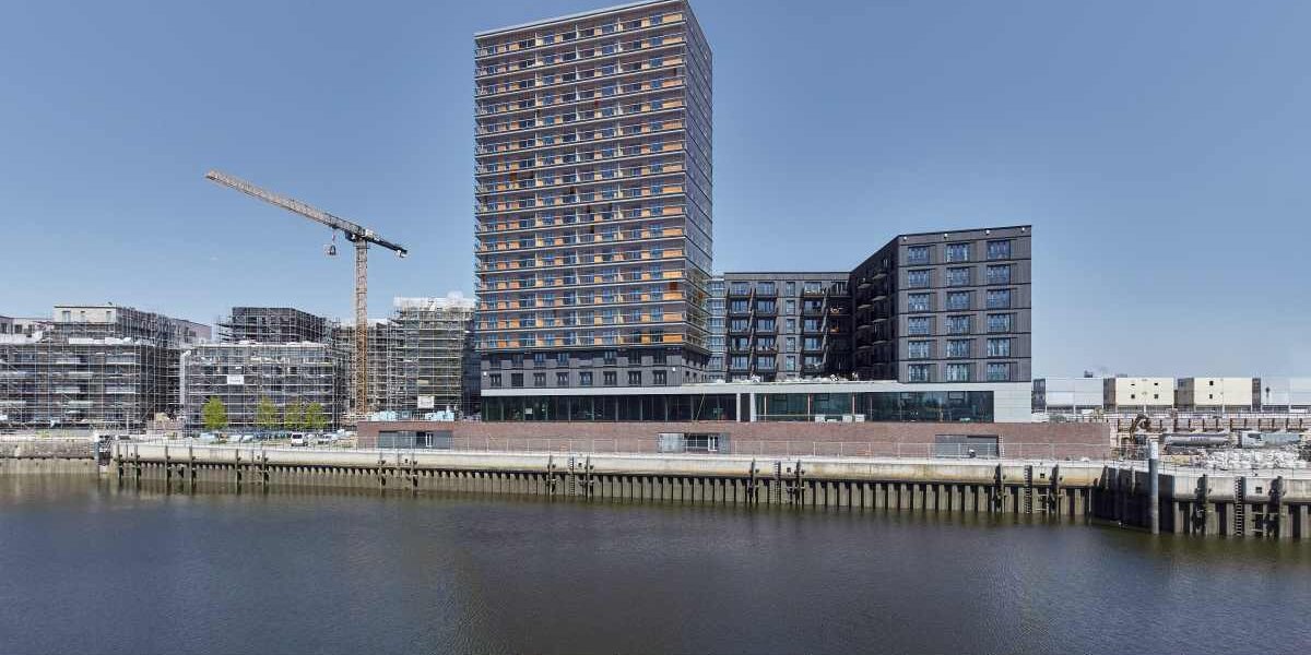 Ad HafenCity di Amburgo, uno dei quartieri più alla moda della città anseatica, sorge Roots, ambizioso progetto che comprende due edifici, una torre di 20 piani, 16 dei quali in legno, ed è l’edificio in legno più alto della Germania, e un secondo edificio di 7 piani, 6 di quali in legno per una superficie lorda di circa 20.600 m², 181 unità abitative, di cui 128 appartamenti di proprietà e 53 appartamenti sovvenzionati con fondi pubblici. Per la realizzazione tecnica del progetto, gli architetti di Amburgo Störmer Murphy e Partners GbR e Garbe Immobilien-Projekte, in qualità di committenti, hanno optato per una costruzione ibrida: solo il piano interrato e il piano terra del grattacielo, così come i nuclei di accesso, sono stati progettati in cemento armato, mentre tutti i piani superiori sono in legno. In particolare, la struttura principale della torre è costituita da pareti esterne altamente portanti in elementi prefabbricati, soffitti in legno massiccio e un anello portante della parete interna. Nei soffitti sono stati installati pannelli XLAM di 240–280 mm di spessore e una seconda facciata in vetro a garantire protezione antincendio, protezione UV e protezione dall’umidità per il legno. In totale, Rubner Grandi Strutture ha lavorato più di 5.500 m³ di legno di conifera (4.430 m³ di XLAM e 820 m³ di legno speciale). Questo volume di materiale da solo consente di risparmiare circa 26.000 tonnellate di CO2 rispetto a produzione, trasporto e smaltimento di materiali da costruzione convenzionali.